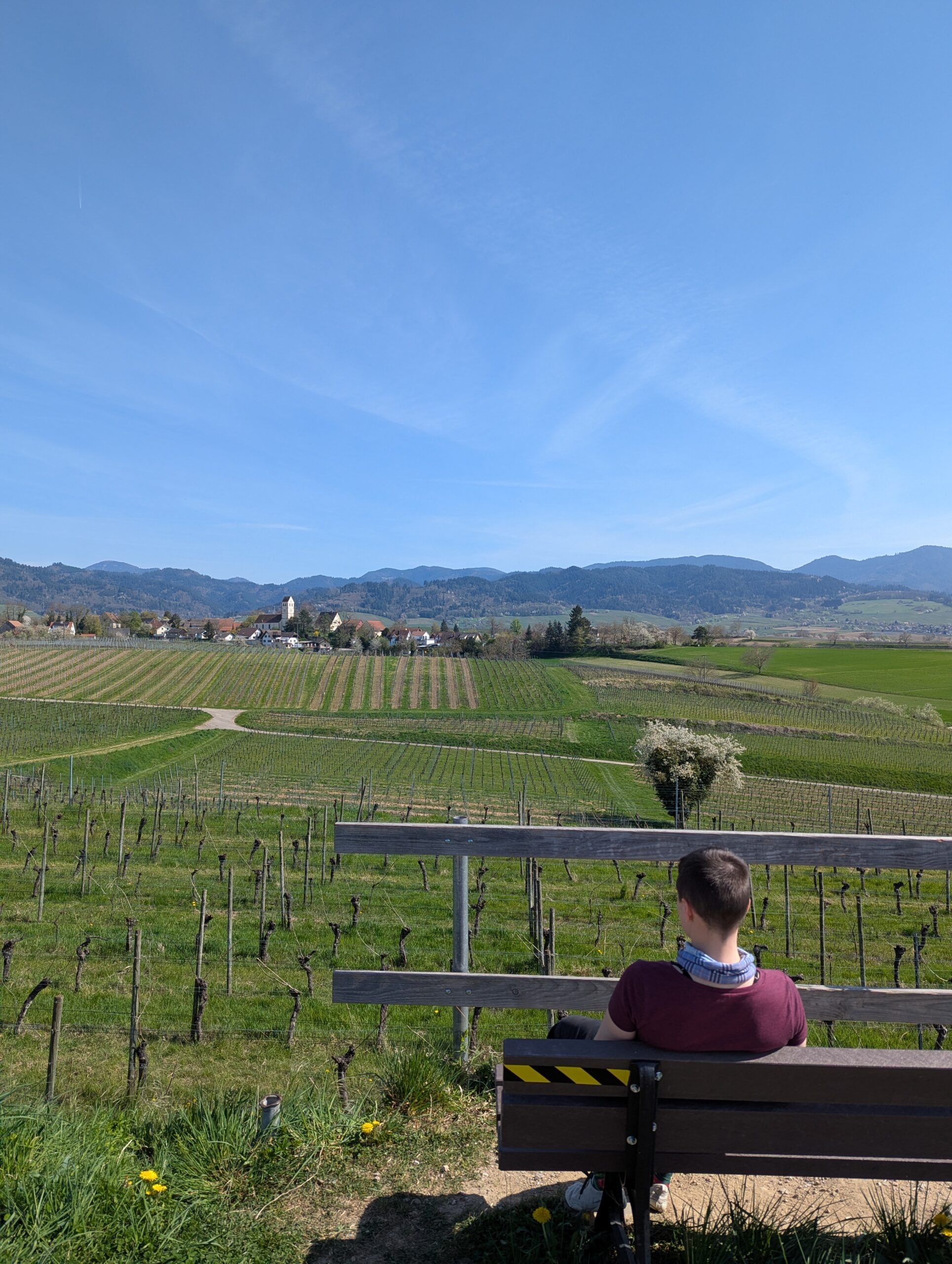 Besonders beeindruckend war der Blick in die Ferne: Am Horizont konnte man die Vogesen erkennen, die erste französische Bergkette, die hier majestätisch über das Land wacht. Ihre sanften Konturen verliehen der Szenerie eine fast magische Atmosphäre und erinnerten uns daran, wie nah wir bereits an Frankreich waren.