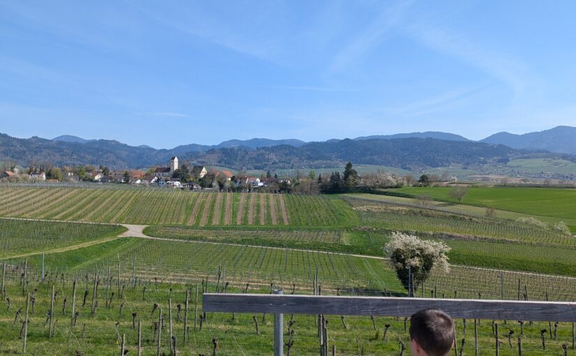 Besonders beeindruckend war der Blick in die Ferne: Am Horizont konnte man die Vogesen erkennen, die erste französische Bergkette, die hier majestätisch über das Land wacht. Ihre sanften Konturen verliehen der Szenerie eine fast magische Atmosphäre und erinnerten uns daran, wie nah wir bereits an Frankreich waren.