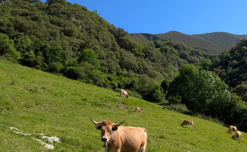 Die Berge an dieser Stelle sind erstaunlich hoch und durch Wanderwege kaum erschlossen. Gerade die Wege, die zu den Bergspitzen führen, scheinen hauptsächlich von Kühen genutzt zu werden.
