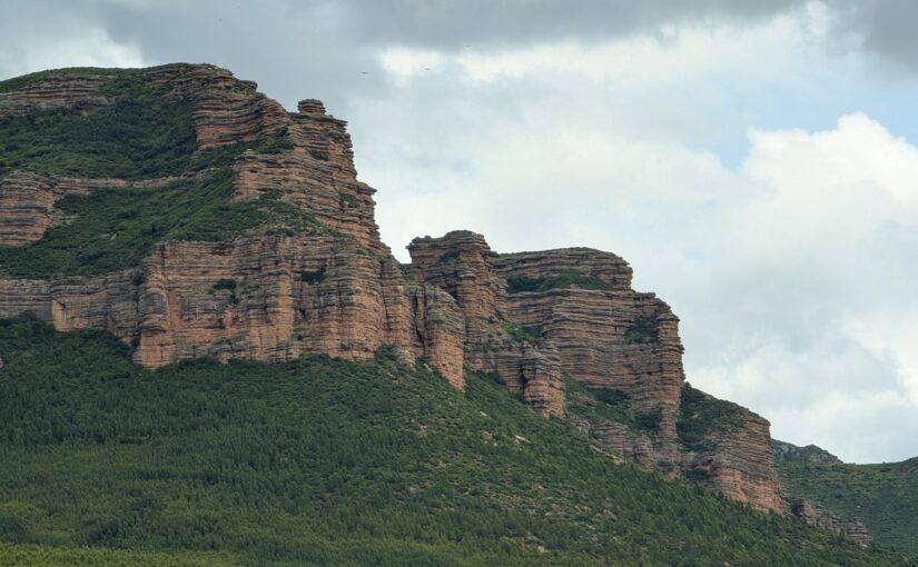 Vom Campingplatz „Armalygal” aus hat man bereits eine hervorragende Aussicht auf die „Mallos de Agüero”, ein Felsmassiv, das sich durch seine in den Himmel ragenden Felsen auszeichnet.
